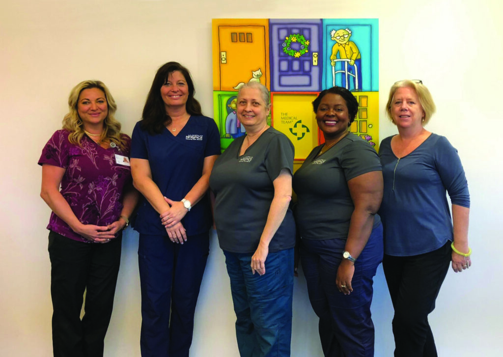 The Medical Team (TMT) staff, left to right: Christy Roberts, nursing team; Laurie Chalice, nursing team; Jennifer Toms, hospice administrator; Rolande Obei, nursing team; Suzanne Andress-Udall, social worker.