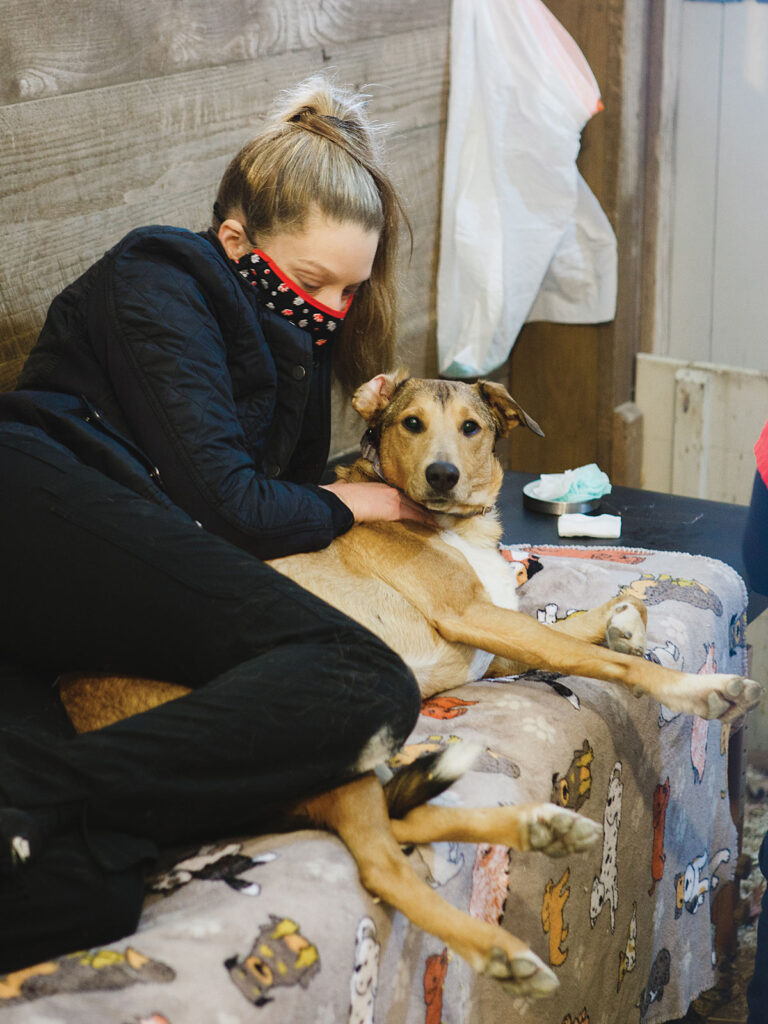 Kim Keppick of Rectortown and her three rescue dogs participated in the inaugural December event and in the second event in Upperville on Jan. 18. “When it came to actually donating blood it was really cute,” she says. “It happened in a horse stall on a masseuse-type bed with what they call ‘a professional dog cuddler’ who basically laid on the bed adoring the dog.” While two of her dogs were naturals, the third was a little timid. “One of my dogs was a little bit nervous, so I had to go in there and help with him. He wanted to do it sitting up. But he is even a baby about getting his toenails clipped. He did have all the moral support he needed, and he really enjoyed his peanut butter too.”