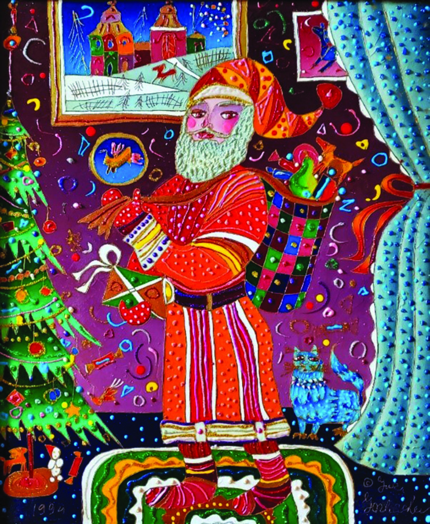 Gorbachev creates colorful, richly-textured canvases in oil and gold leaf. His pieces include a radiant kaleidoscope of folk celebrations, street fairs, circuses, fairy-tales, animals, snowy winter landscapes, and images of the Romanov dynasty. When you purchase an original Yuri Gorbachev piece, you are buying a piece of the Russian heritage and the whimsical nature of their orthodox festivities that come with it. We can’t think of anything more vibrant than an original piece from Gorbachev this year.